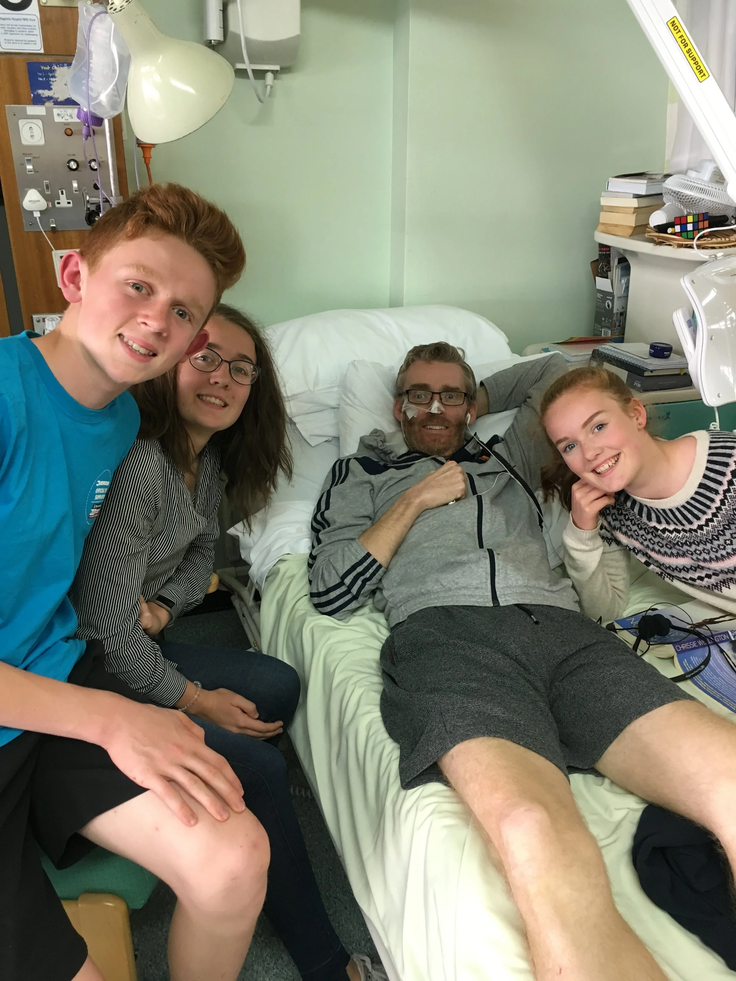 I was slowly recovering and was moved from the ICU into the rehab ward for a few weeks. I can vaguely remember coming around and one of the doctors told me I may not walk again and be in the wheelchair for the rest of my life. I can just remember thinking, that’s not happening! I think I had dragged myself up to shuffle to the toilet under my own steam that very day, much to horror of the nurses on the ward (all be it very slowly and with supervision). I was quite determined from the start. I had continued support from the Occupational Health (OH) team with Elaine and Paula helping me with movement, physio and basic exercises to start to regain mobility. I was committed to regaining movement and followed their advice. I had another very surreal experience before I left Raigmore. On Mum and Kirsty’s suggestion, I went back to ICU to thank all the nurses for the great work they had done on me. I could barely remember being in ICU, but it clearly meant a lot to the amazing team there given the emotional reaction, and I cannot stress enough how much gratitude I have for what they did for me. During my stay in hospital I had a lot of visitors including Pete and Gee, Ewan, Martin, Fletch, Alan, Dougie (an old Uni friend), Claire (my masseuse), Paddy ( another old Uni mate) and a lovely lunch out with my Auntie Deborah and Uncle Maurice who were down in the Highlands on holiday. I’m sure there were more, and apologies if I missed you off the list, but the brain wasn’t quite operating as normal.